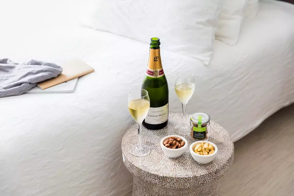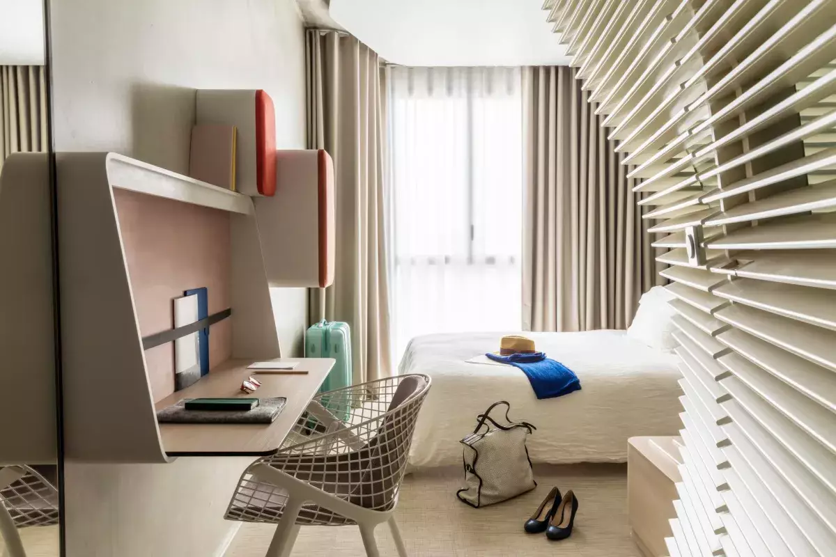 Im zweiten Stock des Hotels befindet sich der große und helle Club, der rund um die Uhr zugänglich ist. Er besteht aus einer Bar, einer Terrasse, warmen Designräumen zum Arbeiten oder Entspannen, einem Restaurantbereich mit Snacks zu jeder Tageszeit und einem Fitnessbereich.