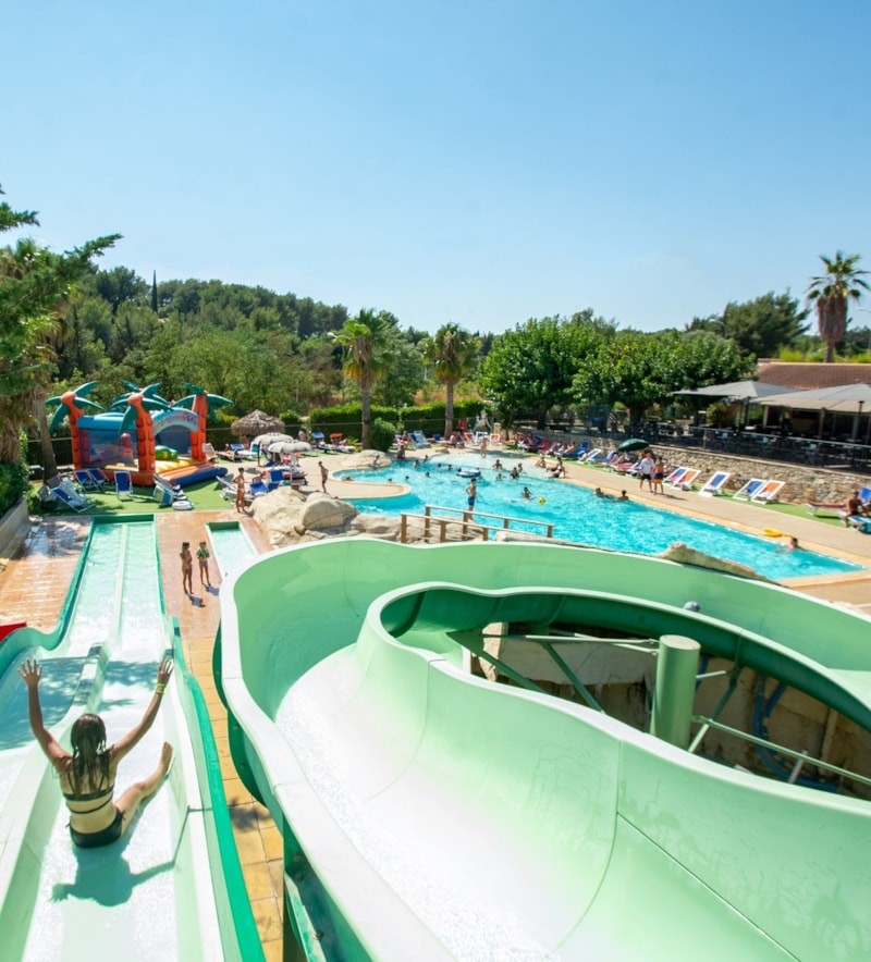 For a sporting family holiday, our Mas de Pierredon campsite is the place for you. 3 kilometers from the beaches and the center of Sanary, it is ideally equipped: water park with multi-track slides, whirlpool and Jacuzzi, multi-sports ground (basketball, football, handball, beach volleyball), tennis court, mini-golf, bowling alley, children’s play area, restaurant ... And an entertainment team in July and August! Self-cleaning toilets.