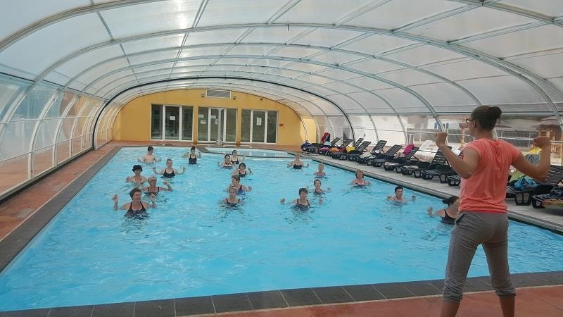épicerie, bar, restaurant, piscine couverte et chauffée avec bains hydromassants, animations en juillet aout, espace de musculation