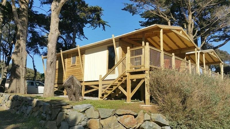 Beachfront with views and direct access to the ocean, close to Pornic campsite 4* with indoor pool and heated all season. Quiet and family campsite of 153 pitches; Overnight or week rental of pitches, mobile home or lodges on stilts with sea view.