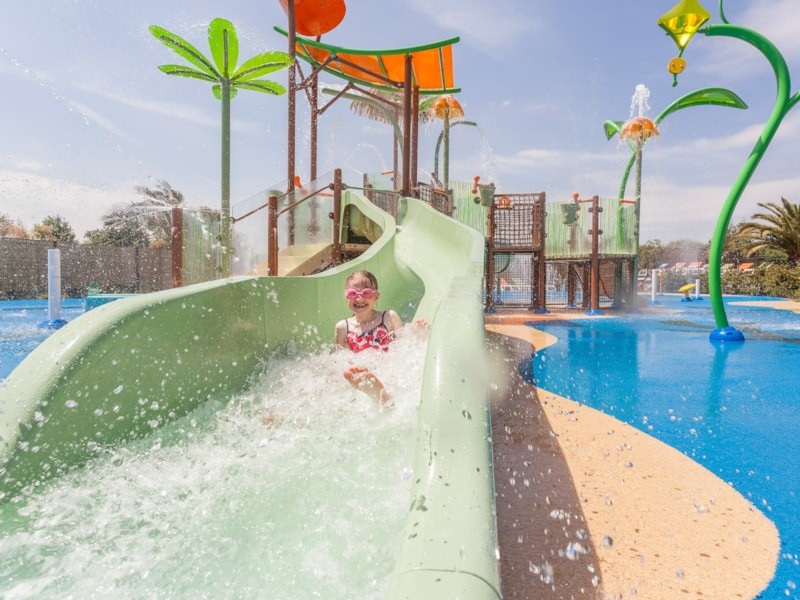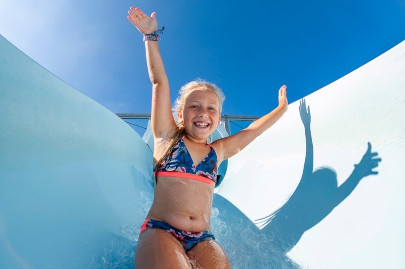 Discover a blue and green world: amongst a luxuriant vegetation, our leisure pool area guarantees fun and relaxation for all. Heated water, swimming pool, tropical river, 3 giant waterslides, paddling pool, spa bath, inbdoor pool and fitness area (reserved for adults, including sauna, jacuzzi and cold plunge pool), and much more.