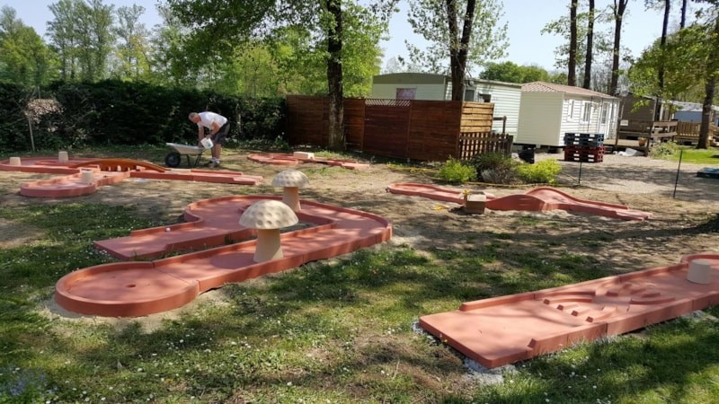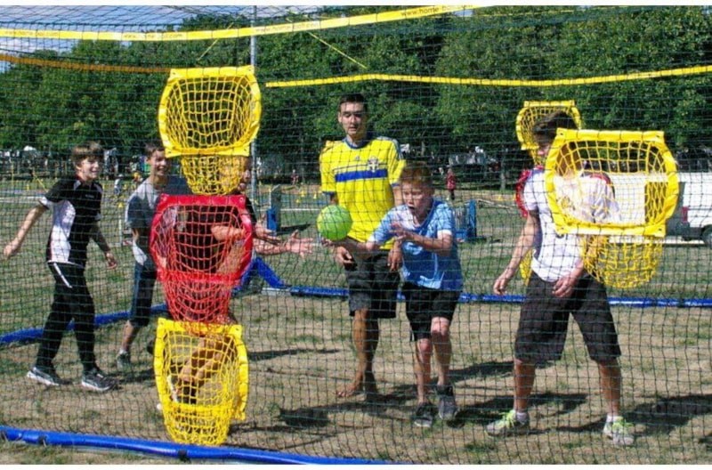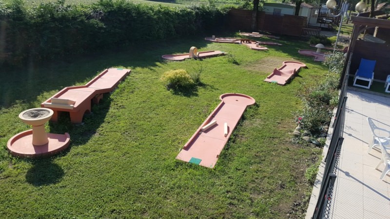 Numerous outdoor games, minigolf, homeball, trampoline, basketball, volleyball