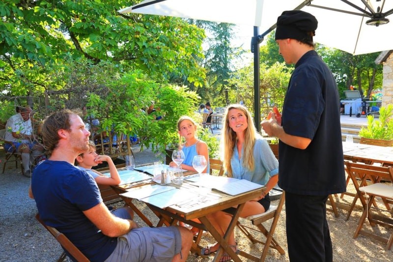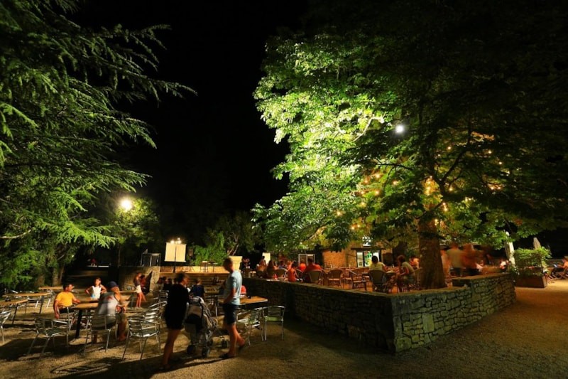Have a drink at the terrace by the bar in the shade of a chestnut tree or while enjoying the evening entertainments with our team (July and August).