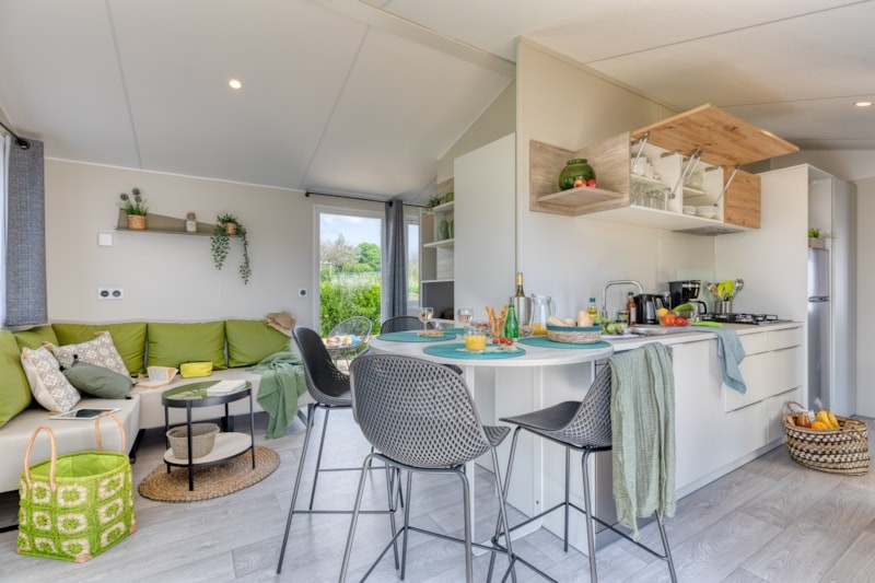 ' Our mini-market 'Le Filet à Provisions' welcomes you when the campsite opens. There you will find several kinds of special breads, baguettes, and pastries starting at 8 every morning, as well as everything necessary for your stay