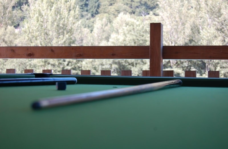 A playroom(gaming room) with billiards(billiard table), table football and pinball machine, as well as games(sets) for children and devices of outdoor fitness.