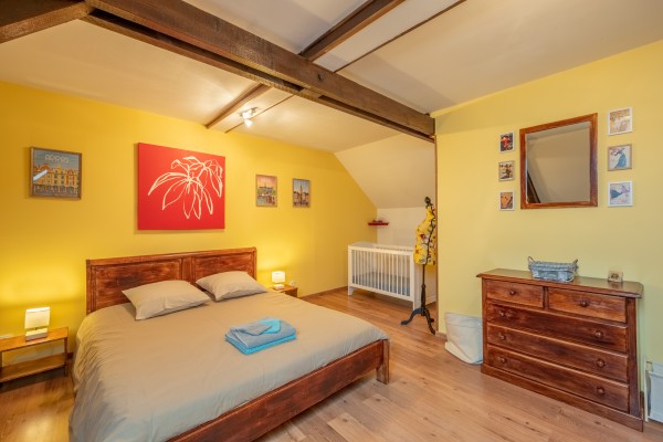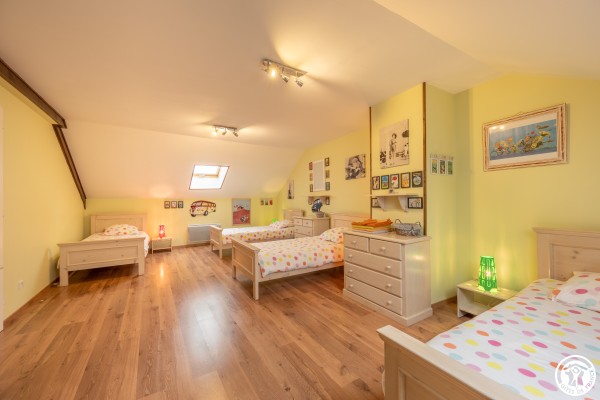 Côté rooms, you'll find 5 comfortable and carefully aménagées rooms, 4 à l’étage and 1 à easy accès on the ground floor. (1 bed 160, 1 bed 160, 1 bed 160, 1 bed 160 and 4 beds 90). Côté Toilette, 3 shower rooms (2 à létage et 1 au Rdc) sont à disposition.