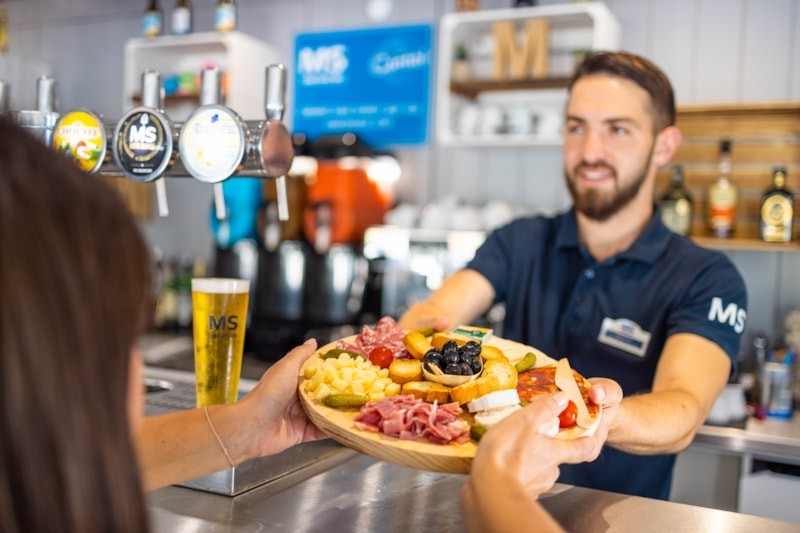 For a treat or a meal, La Côte Sauvage Camping Club offers comprehensive dining options featuring a restaurant, a snack bar, a bar and a dessert counter. Your taste buds are in for a thrill! And our corner shop sells bread and other baked goods, as well as magazines for you to flip through poolside.