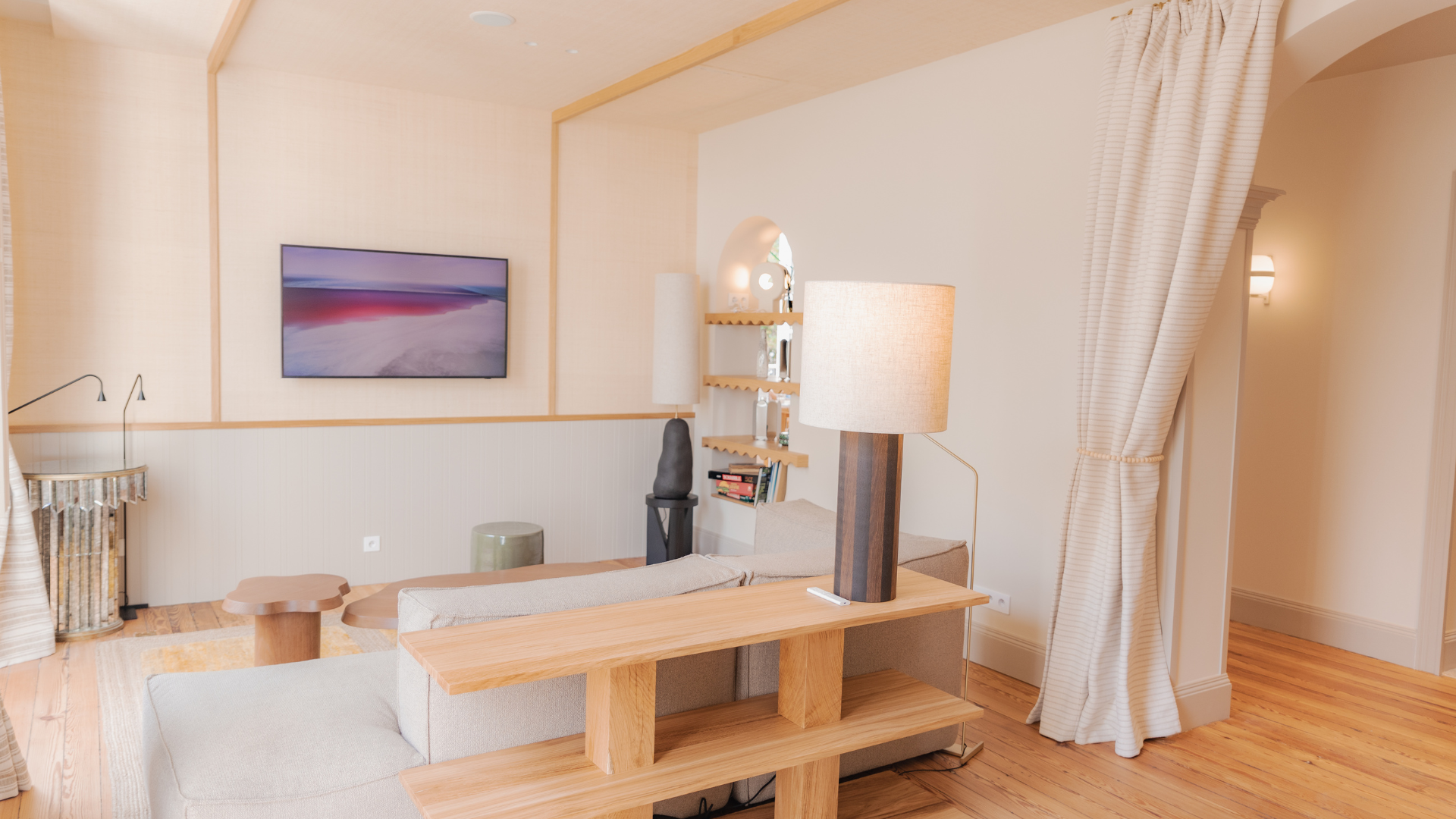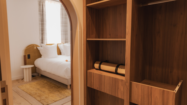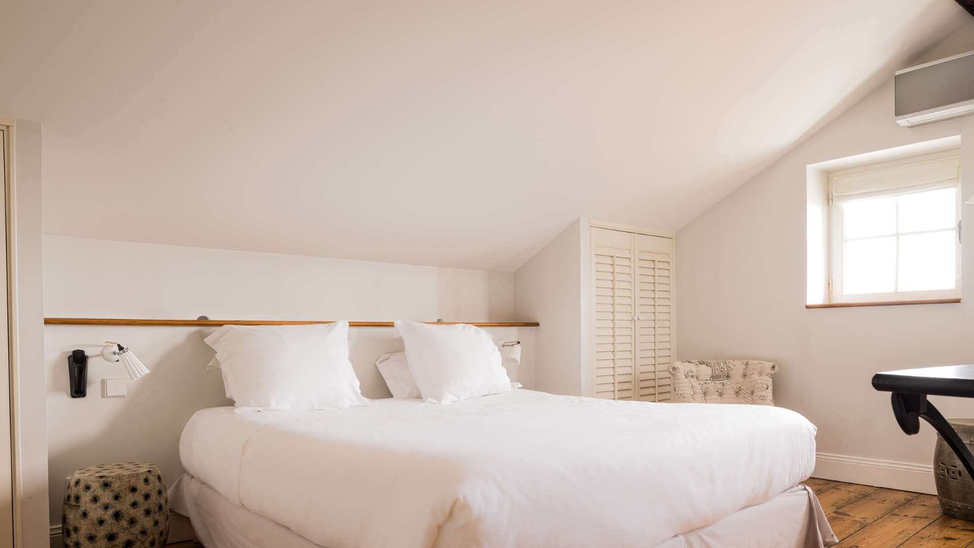 Inside, the decoration echoes the neo-basque heritage of the building and transports you into a warm and intimate cocoon, in which the children enjoy their own separate room. A large dressing room allows you to store all the family's belongings and separates the parents' room from the children's.