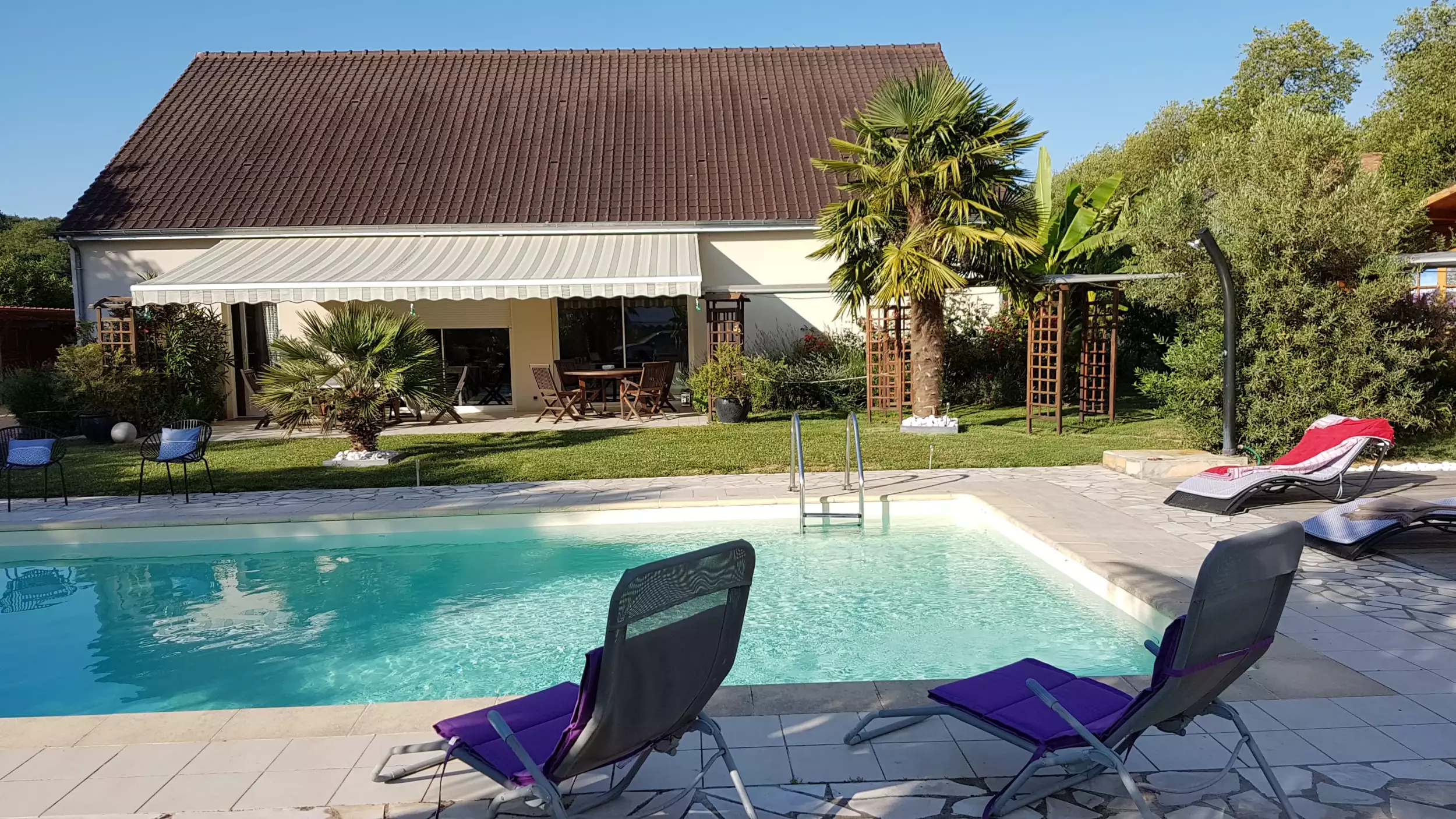 Sit back in a deckchair, on our terrace by the pool for a moment of relaxation after a crazy day at the Zoo of La Flèche, a race at the mythical circuit Du Mans or simply on the road of your vacations.