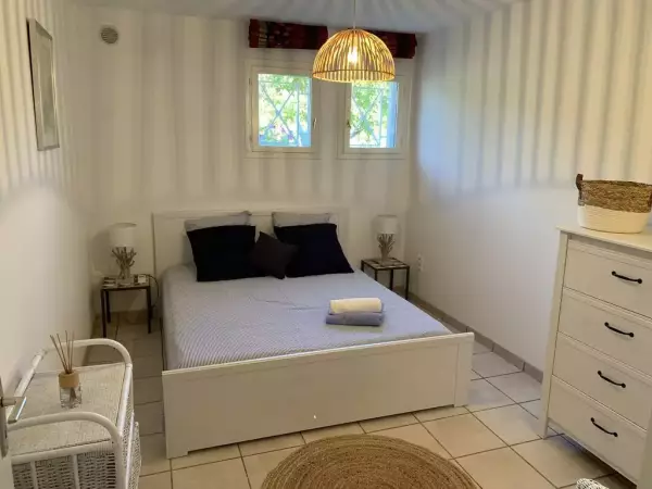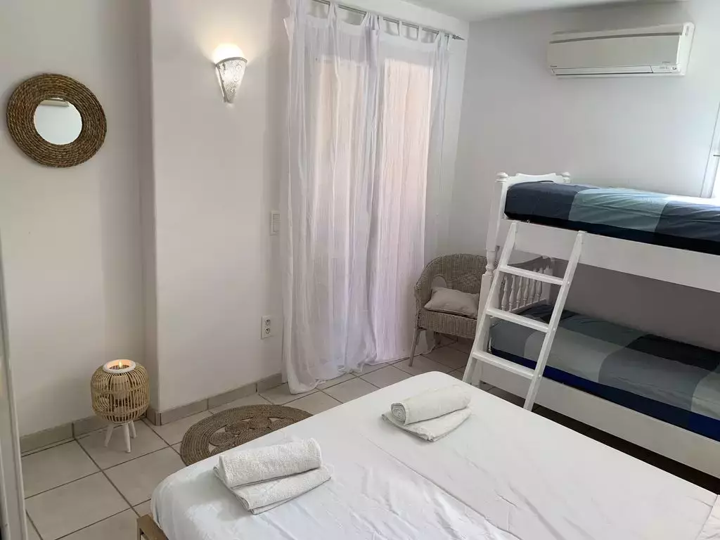 Then for its interior, neat and picturesque. Its 4 rooms, all air-conditioned, offer a capacity of 10 people. They open either onto the large living room or onto one of the two terraces. The villa also has three shower rooms, a large fully equipped kitchen and even a summer kitchen.