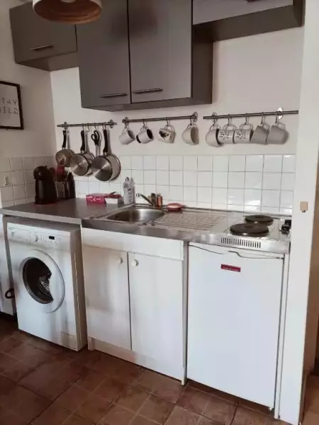 This apartment features a bedroom, a flat-screen TV, a living area and a bathroom with a shower. The kitchen is equipped with a microwave and refrigerator. Towels and bedding are provided.