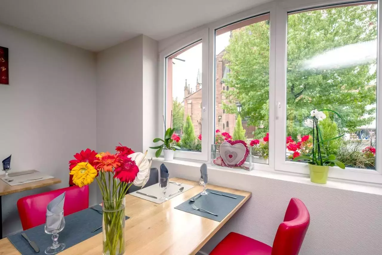 We welcome tourists or professionals in a warm and welcoming environment. We are open 7 days a week. Come and see our rooms with their pure and contemporary design! Spend a night in a restful décor, and fall asleep peacefully looking at our beautiful Marienthal Basilica…