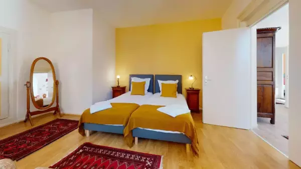 🛏️ You want to sleep in beds of 180 cm by 190 cm? Once the renovation is completed, you will be able to book a double bed option for each room, so that the 2 single beds become a double bed, with a double mattress and a double comforter: