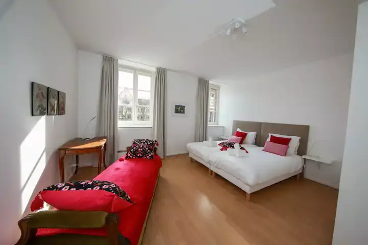 🥨 In the heart of downtown Colmar, the 160m2 GRIMM apartment is ideal for a day out with family, friends, colleagues, for a weekend, vacation or work. With its 3 bedrooms and 3 bathrooms, the apartment can accommodate up to 10 people.