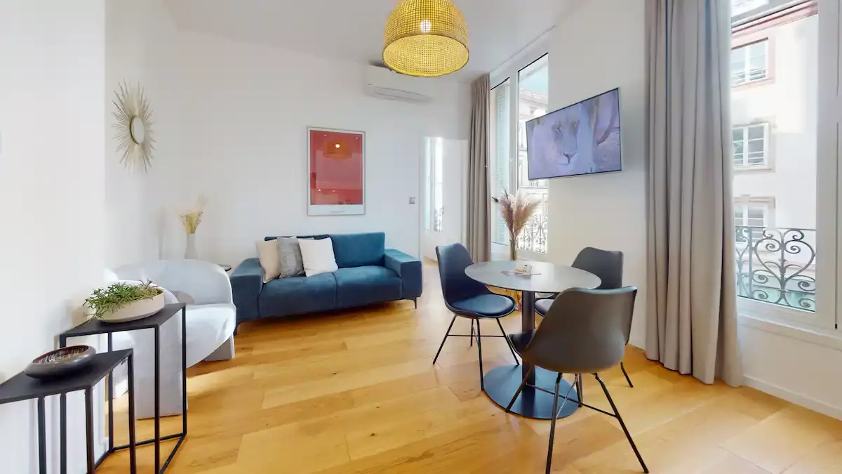 🥨 In the heart of the Grande Ile of Strasbourg, the apartment GUTENBERG 4 is located in a building built in 1768, located 12 Rue de la Mésange, à the corner with the place des étudiants. It welcomes you in a warm and comfortable setting, entirely renovated in the summer of 2022.