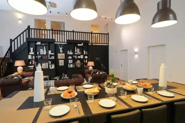 🥨 In the heart of downtown Colmar, the HAUSSMANN Duplex apartment of 225m2 is ideal for a day with family, friends, colleagues, for a weekend, vacations or work. With its 5 bedrooms and 4 bathrooms, the apartment can accommodate up to 15 people.