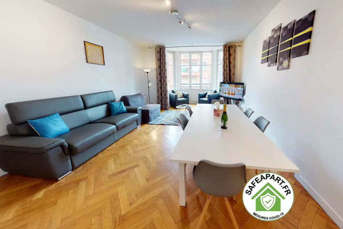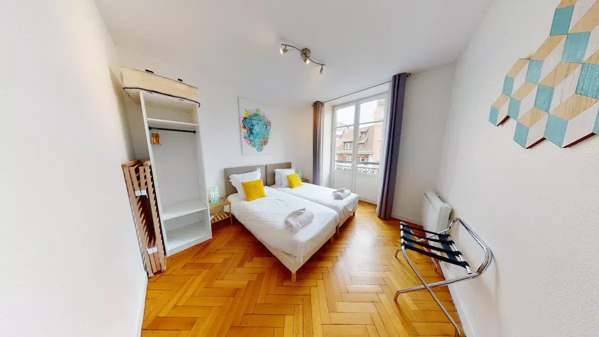 In the heart of Strasbourg's city centre, the NETTER flat consists of two bedrooms with 2 single beds + a living room with a double sofa bed and a single sofa bed. It also has a bathroom with bath and washing machine and a separate toilet.