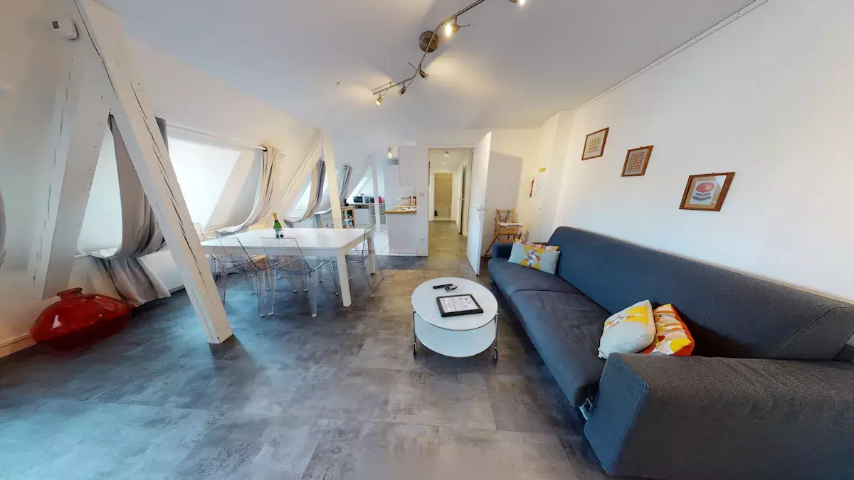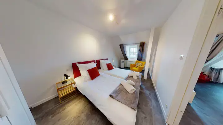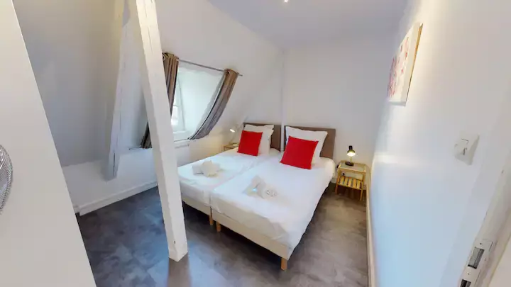 In the heart of the city centre of Strasbourg, flat classified 3 stars, with 2 bedrooms each having 2 single beds. In the living room, there is a sofa bed for 2 people. Bathroom with bathtub. Separate toilet.