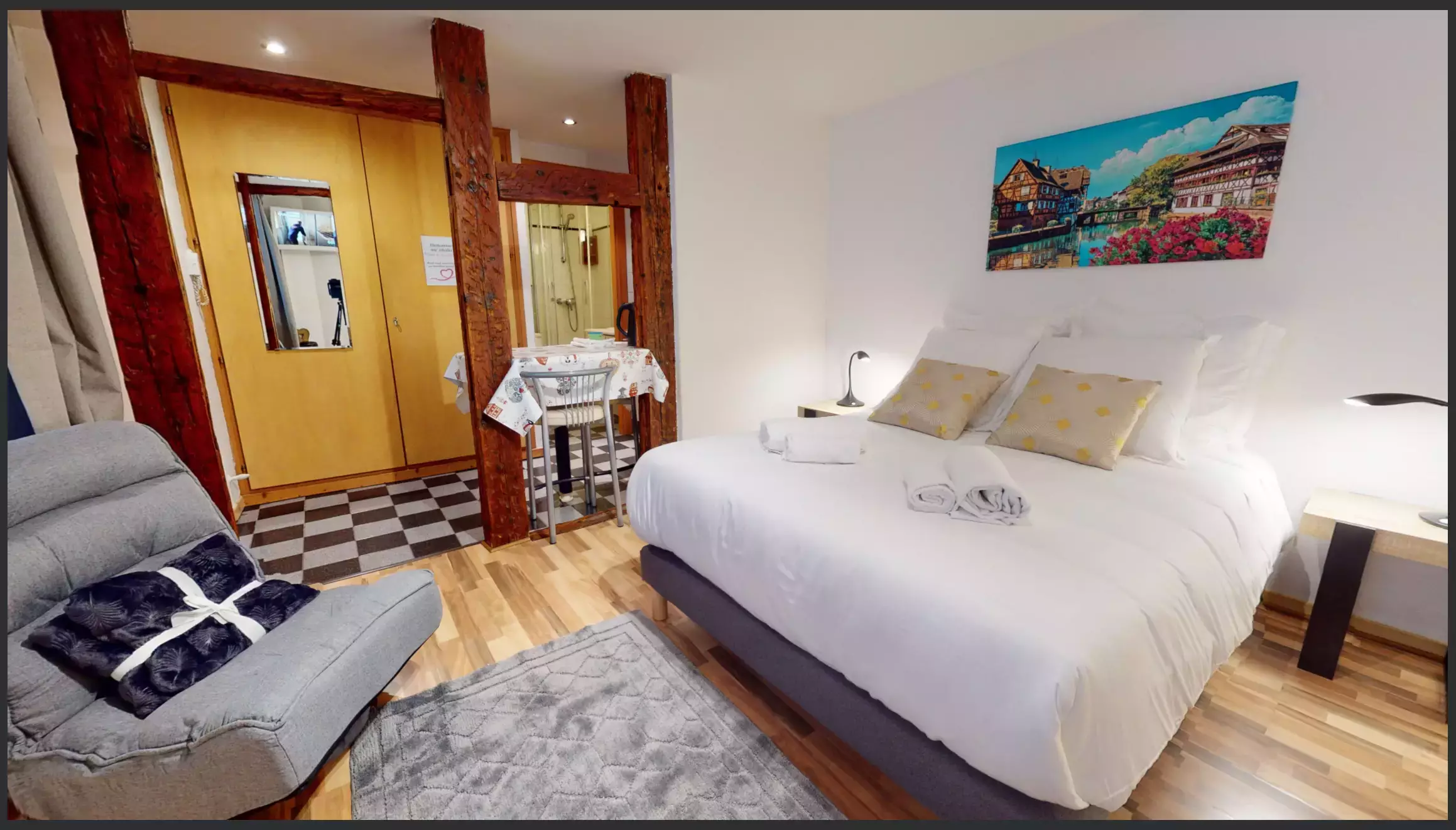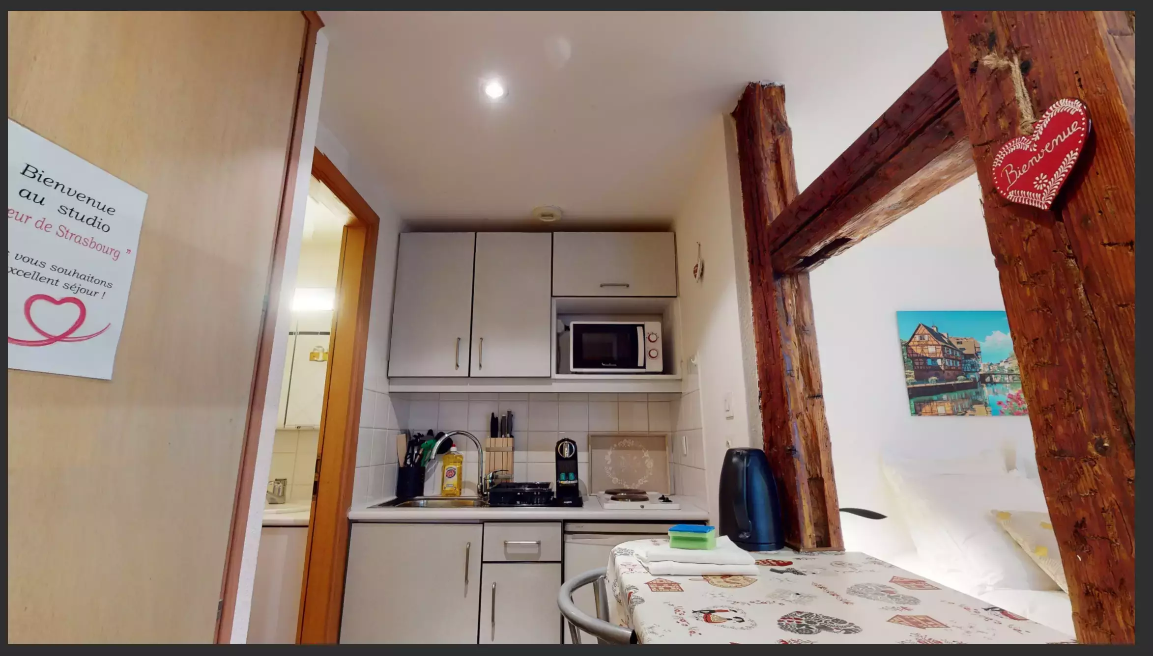 🥨 In the heart of the Grande Île of Strasbourg, the Studio Cœur de Strasbourg is located in a building listed as a historical monument since 1984, built shortly afterwards in the Renaissance style in 1587. It welcomes you in a warm and comfortable setting with exposed beams for a romantic day out in Strasbourg, a business trip or tourism.