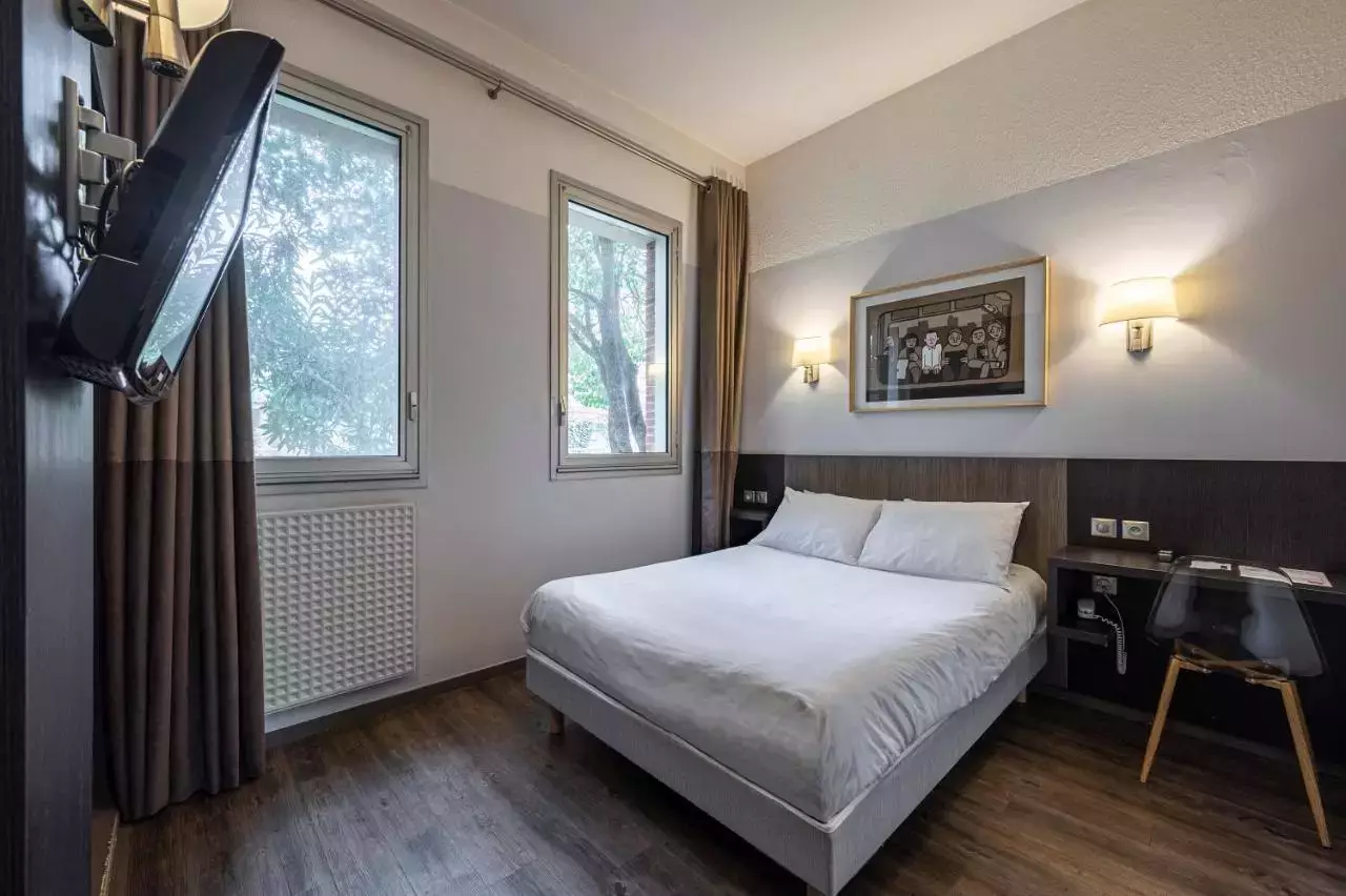 The Hôtel Gascogne enjoys a remarkable location in Toulouse: both in the Saint-Cyprien district, right next to the Rive-Gauche clinic and the Joseph Ducuing hospital, and just a few minutes from the hyper centre and the Place du Capitole (15 minutes).
