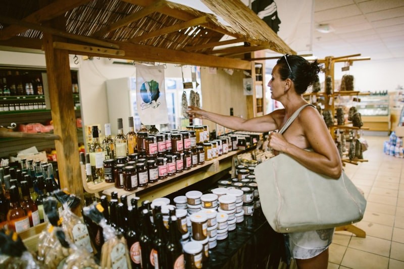 Mini-market (corsican and organic products) open from 1st of may till 15th of october .