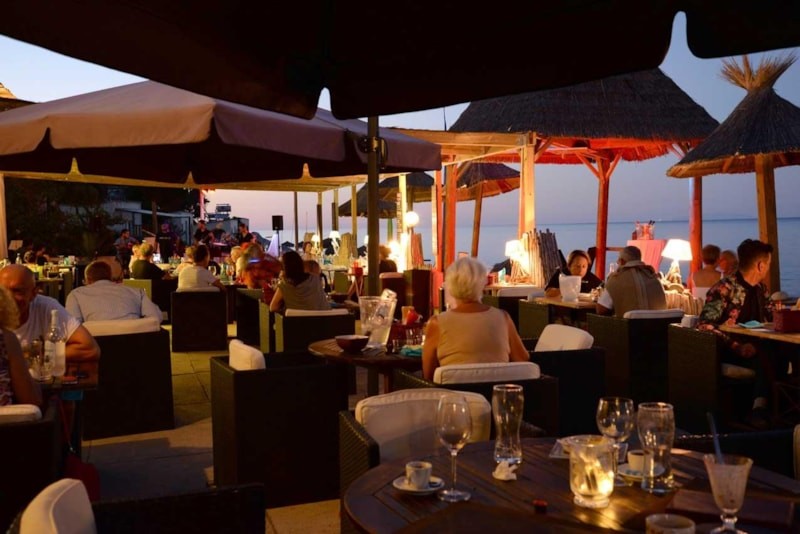 Bar-Restaurant on the beach : Corsican cuisine,and seafood , set menu, menu, children's menu, pizza, takeaways, cocktails, icecreams, waffles, crepes...Evening entertainments ( Corsican bands, Jazz, Rock, theme night ) .