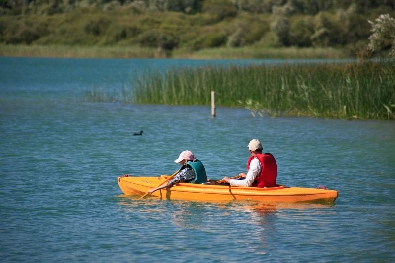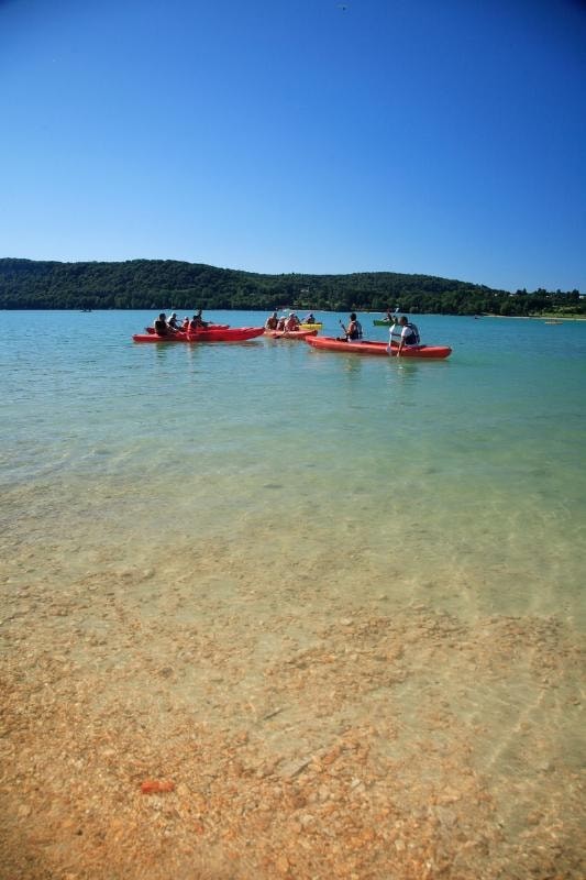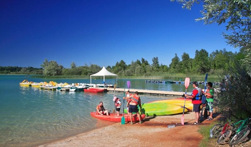 The campsite has a nice waterpark with 1 heated outdoor pool, 1 heated covered pool with hot tubs, 1 paddling pool for smaller kids and waterslides. You have direct access to the beach of the lake where you can fish, canoe or swim.