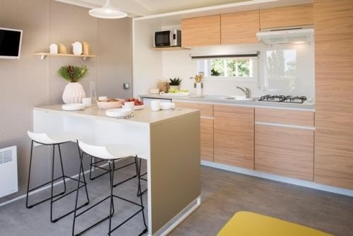 Camping la Pergola is located in the Jura, at the beach of the beautiful lake of Chalain. Here you can rent fully equipped mobile homes.