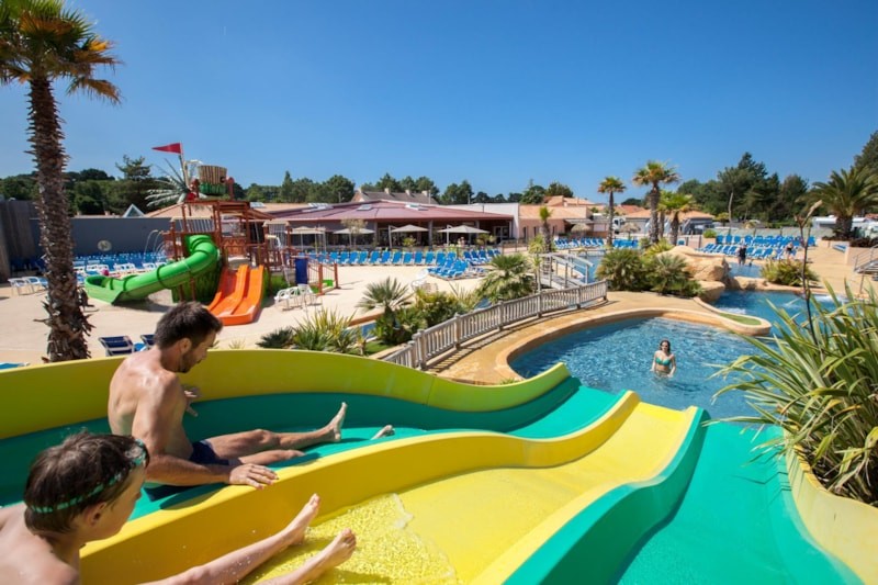 Notre camping Sunêlia Le Fief est parfait l'été avec son parc aquatique, ses toboggans, sa rivière rapide, cascades, balnéo.