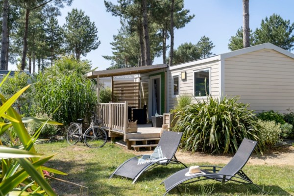 The perfect setting for a successful holiday in our lovely beach resort at Saint-Brevin-les-Pins, nestled between sea and forest on the Jade coast in Southern Brittany. 800 m from beaches, Le Fief is a 5-star village-campsite with stores surrounding a superb water park with exotic vegetation, and a large heated pool open all seasons.