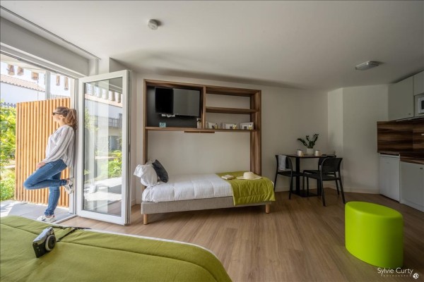 Résidence hôtelière nouvelle génération, elle propose de véritables lieux de vie équipés, dotés de services hôteliers, dans lesquels vous vous sentirez comme chez vous. Mobilier design, espaces généreux, kitchenette équipée, produits d’accueil et salle de bain spacieuse.