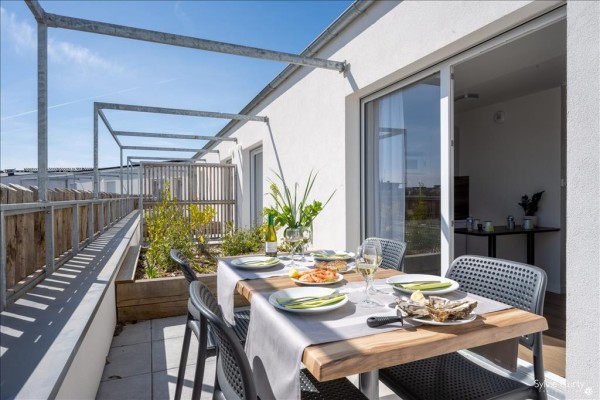 Le T2 Premium est un appartement d'environ 40m2 pour 1 à 4 personnes bénéficiant d'un balcon ou d'une terrasse avec une vue dégagée côté rue ou côté jardin (intérieur à la résidence).