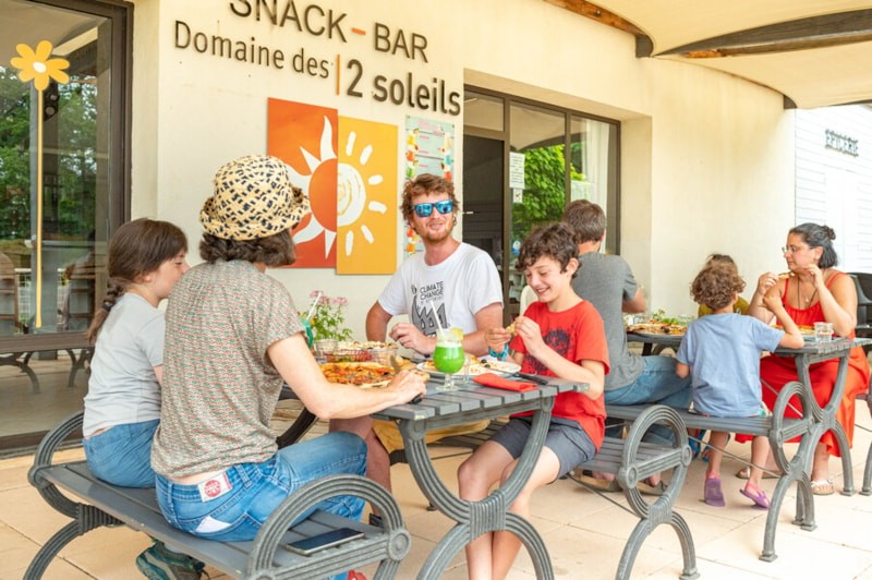 L'épicerie-snack-bar du camping Domaine Les 2 Soleils à Serres ouvre ses portes en juillet-août pour les petits déjeuners, les goûters et dîners. Vous y trouverez une large sélection de produits locaux à consommer sur place ou à emporter : du pain, des planches apéro composées de charcuteries et fromages locaux en vente à l'épicerie, des tourtons et des croustillous qui régalent aussi nos amis végétariens, des bières, jus de fruits, des pâtes, des confitures, miels, tartes, mais aussi une gamme de cosmétiques.