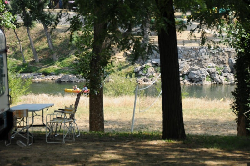 La grande plage privée du camping Le Clapas, sur la rivière Ardèche, représente un point fort majeur : tous les emplacements (camping ou mobil-home) ont un accès piéton à l'espace de baignade.
