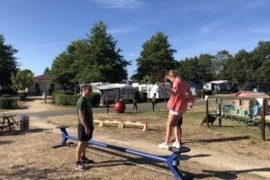 Les enfants bénéficieront de l’aire de jeux, du trampoline, du baby-foot, d'un fitness de plein air et également d'un puissance 4 géant en toute sécurité.