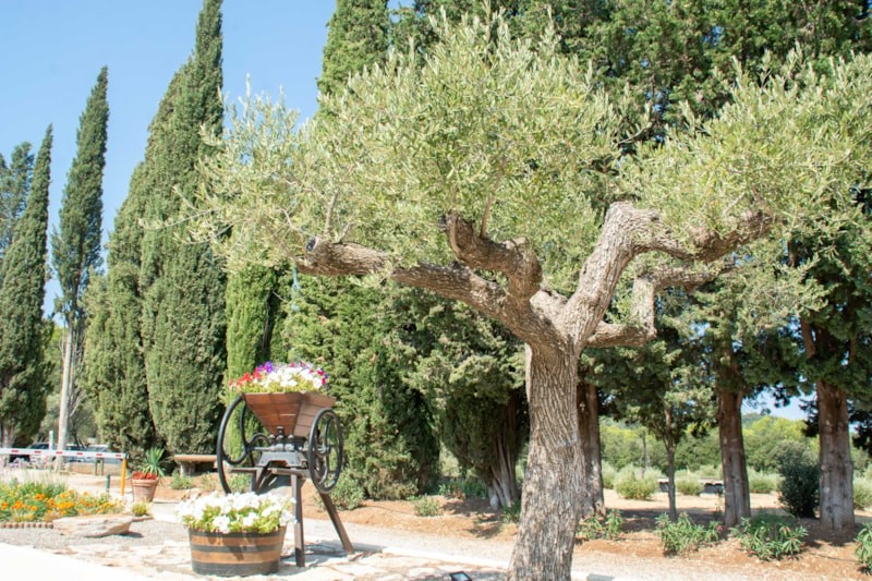 Le Camping s'étend sur 5 hectares ombragés, planté de bois et d'olivier.