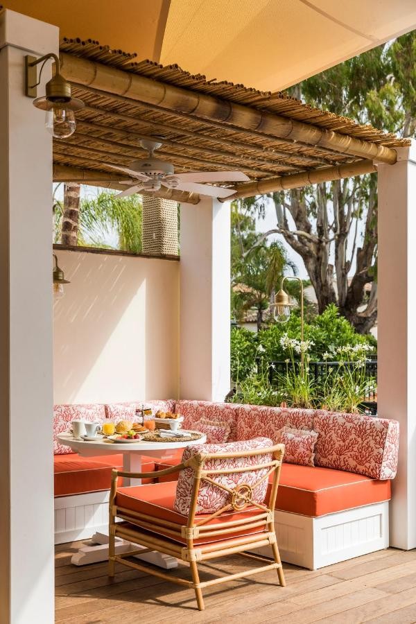 Conçu comme un hameau provençal, il est environné d’un beau jardin planté d’essences méditerranéennes telle une remarquable collection d’agrumes. La Tartane se révèle comme un lieu chaleureux égayé d’une palette de couleurs solaires et de matières naturelles. Banquettes en bois, chaises et têtes de lit en rotin, tables en travertin, textiles brodés…