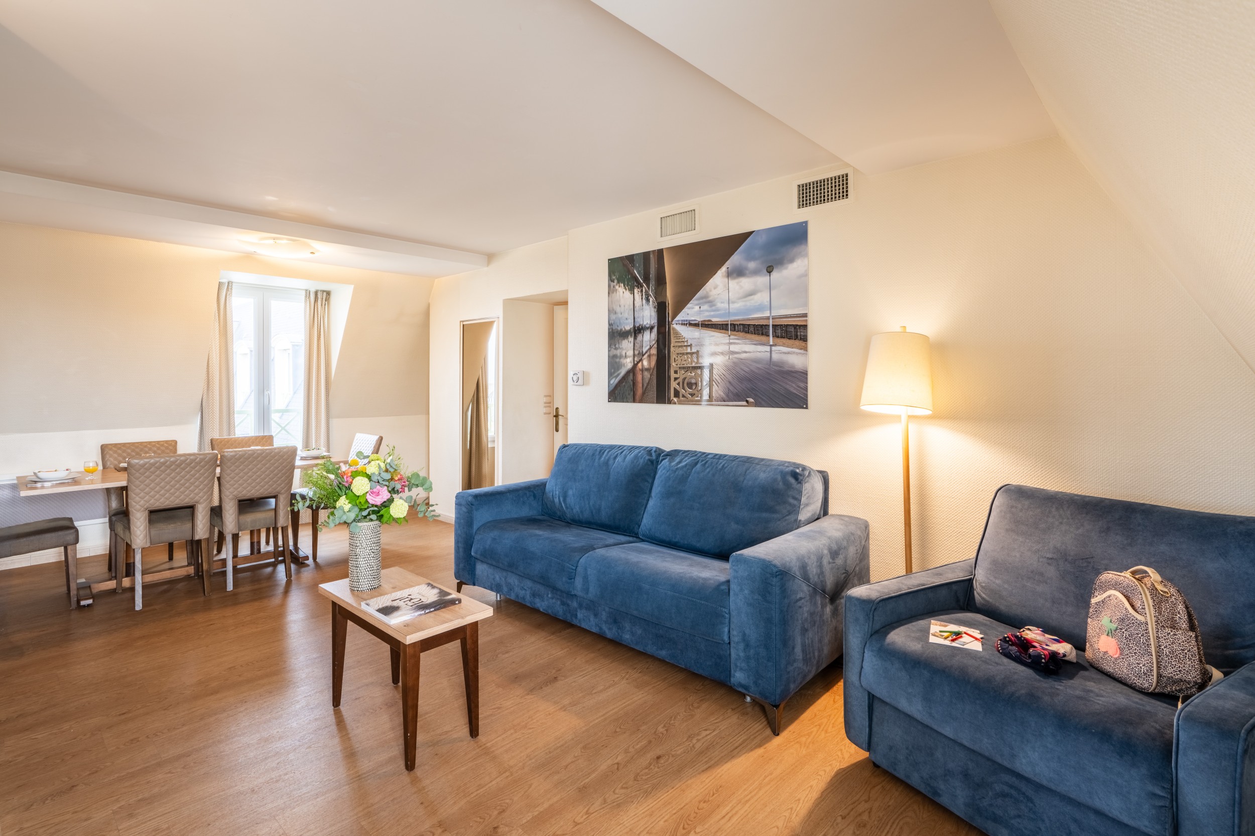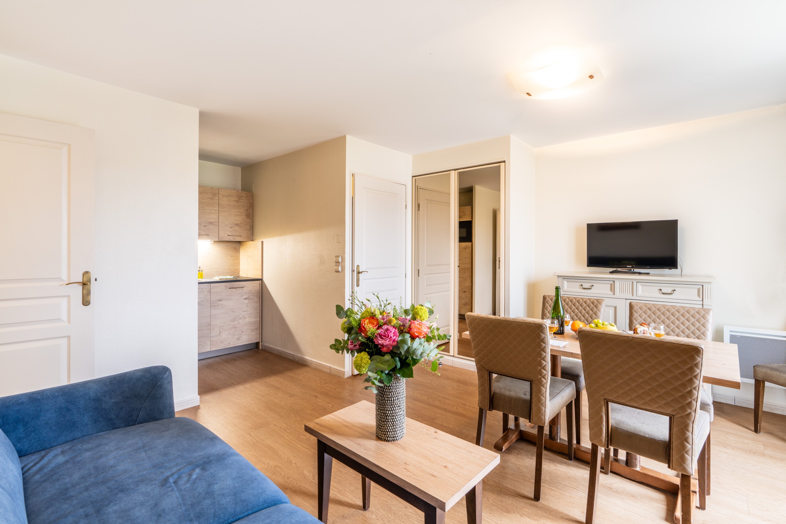 Profitez de notre residence La Closerie et d'un magnifique appartement suite prestige de 3 pièces de 60m² pouvant accueillir de 1 à 7 personnes avec sa terasse privative équipé d'un solarium en bois, il domine la ville et l'hippodrome.