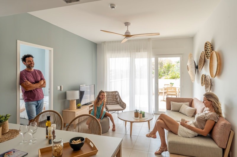 Profitez du parc aquatique et des services du camping Douce Quiétude 5*. Cerise sur vos vacances déjà placées sous les meilleurs auspices : en séjournant dans notre résidence Eden, vous avez également accès aux infrastructures, parc aquatique, services et clubs enfants gratuits de notre camping Douce Quiétude situé à proximité lorsque celui-ci est ouvert. Une raison supplémentaire, s’il en fallait une, de choisir la résidence Eden comme pied-à-terre estival !Présentation synthétique