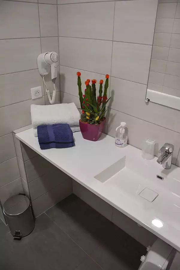 Le Sud hôtel est composé de 36 chambres doubles ou singles et de chambres familiales. Pour les familles de 3 à 5 personnes, nous disposons de chambres communicantes : une chambre avec 2 lits, un lit d’appoint et une chambre avec un grand lit.