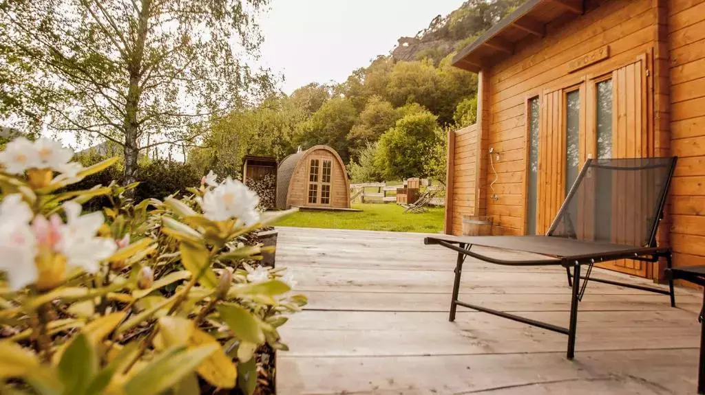 Dans le jardin, un sauna et un bain de Patagonie offrent une pause bien-être.