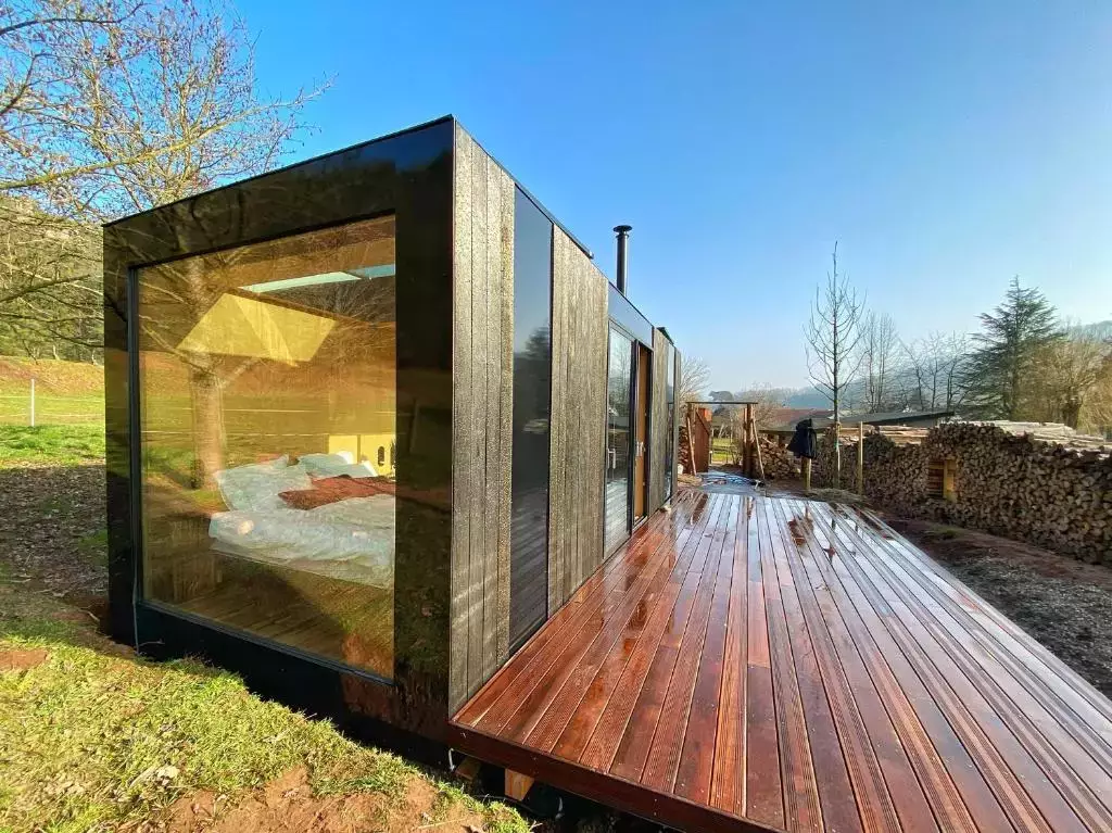 En harmonie avec la nature du crépuscule à l'aube, ouverts sur la forêt et sur le ciel, les lodges Bleu Minuit conjuguent élégance et confort.