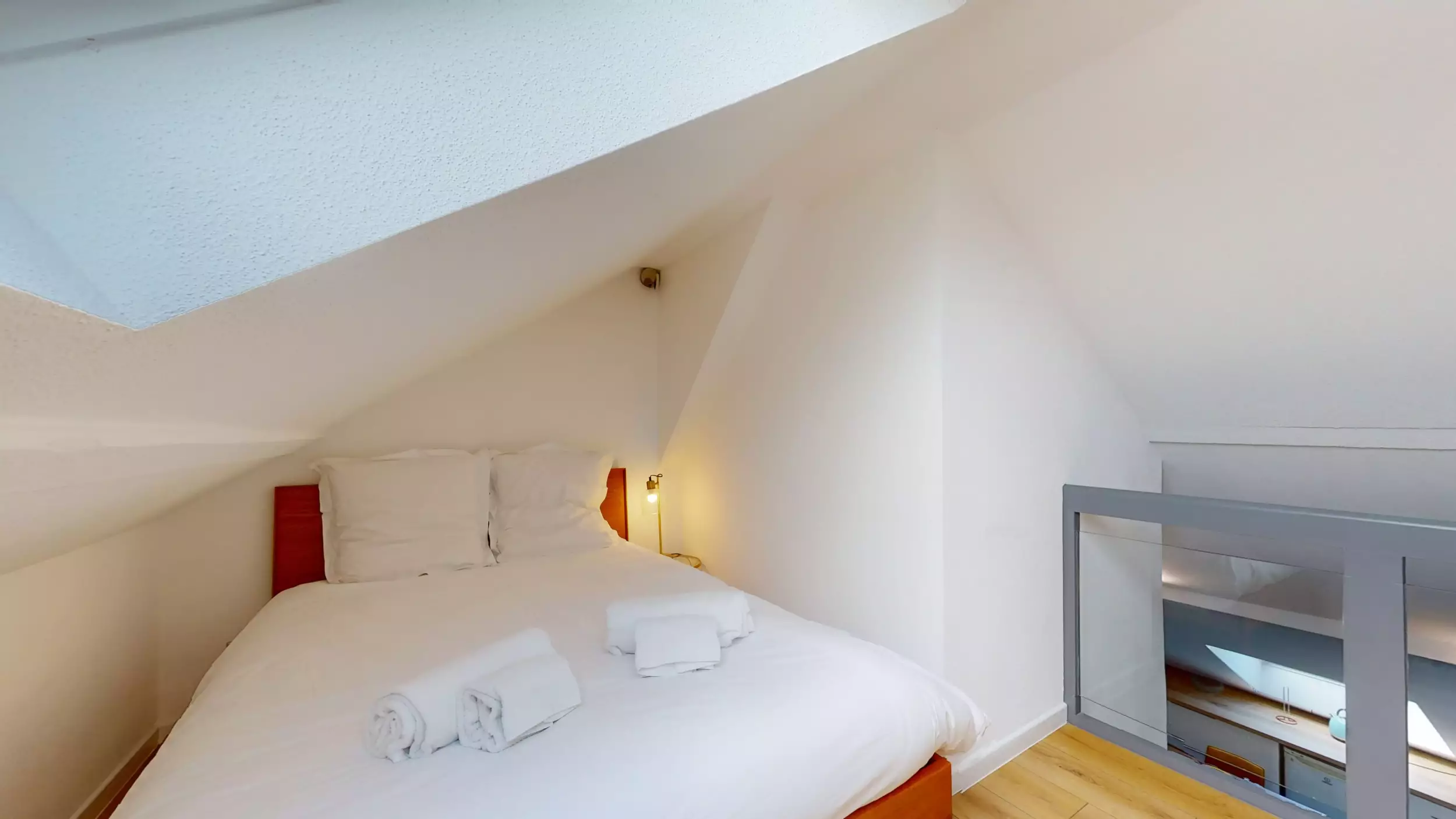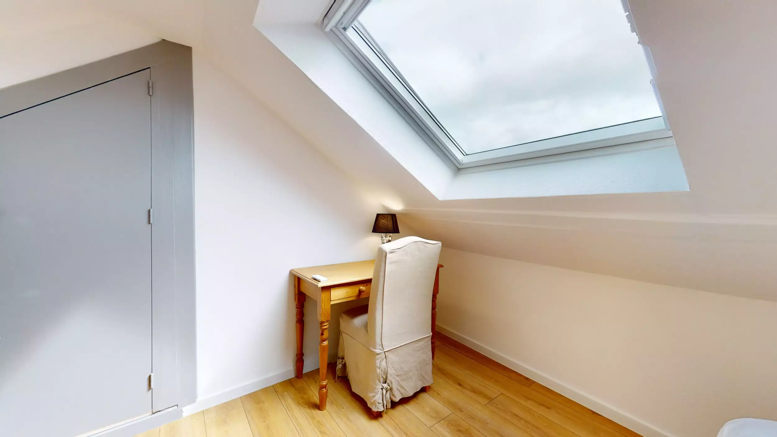 🛏️ A l’étage vous trouverez votre cocon pour la nuit avec une chambre disposant d’un lit double et d’un espace bureau.