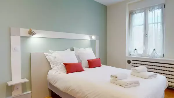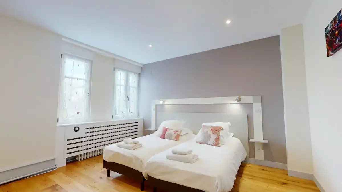 Cet appartement est équipé de trois chambres spacieuses avec rangement. Deux chambres sont équipés de lit double, la troisième de deux lits simples.