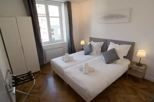 Au cœur du Centre-ville de Strasbourg, appartement OBERLIN dispose de 2 chambres (2 lits 1 personne chacune) + salle de Séjour avec 2 canapés-lits 2 personnes. L'appartement est composé d'une salle de douche, d'une salle de bain avec WC et d'un WC séparé.