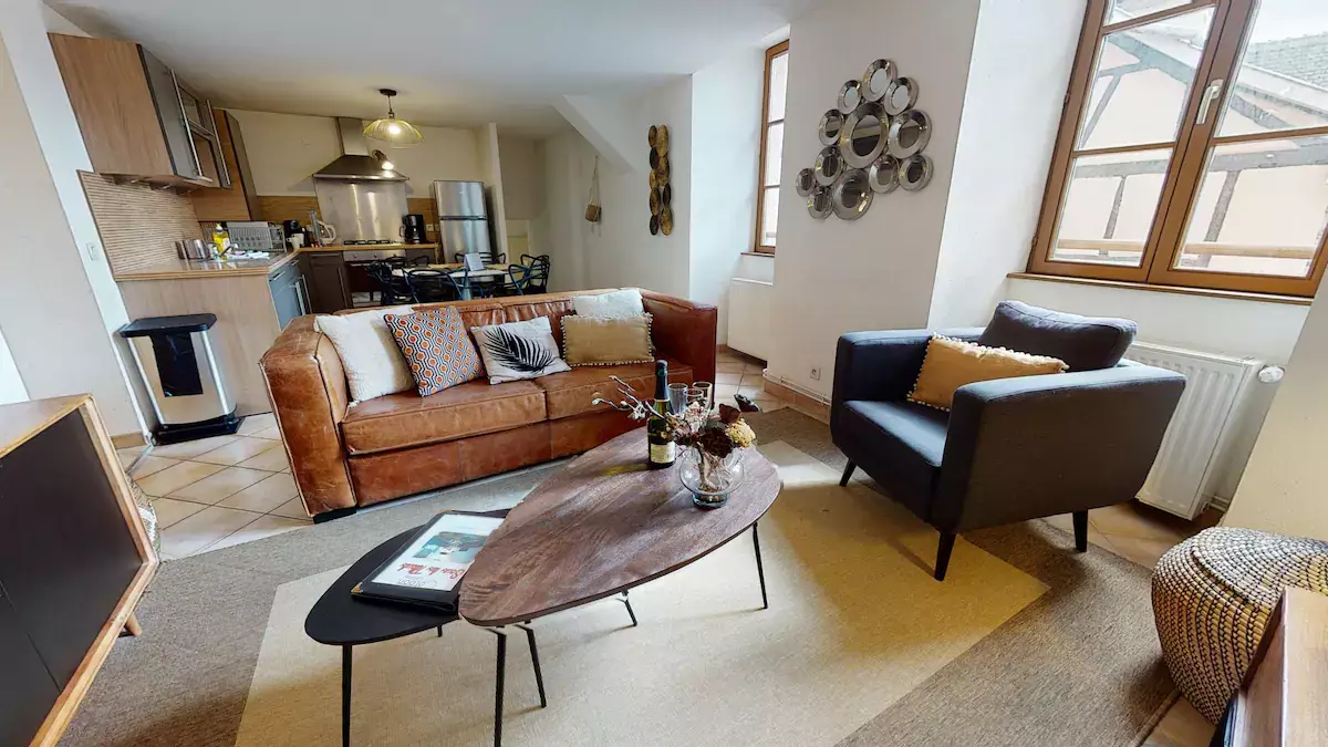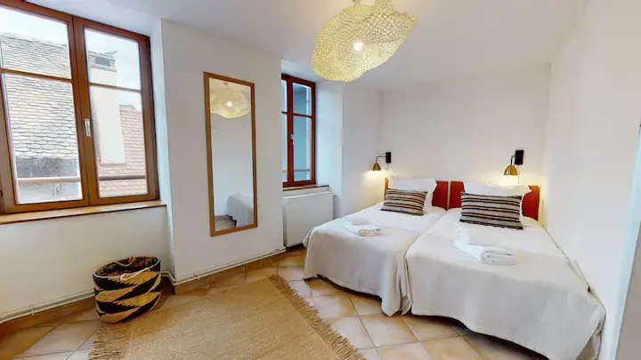 🥨 Au cœur de la vieille ville de Colmar, classé monument historique, l’appartement Sous les Tilleuls, est un superbe logement de 80m², décoré avec beaucoup de charme. Il se situe dans un immeuble calme au pied de l’église des Dominicains et de son marché de Noël en décembre.
