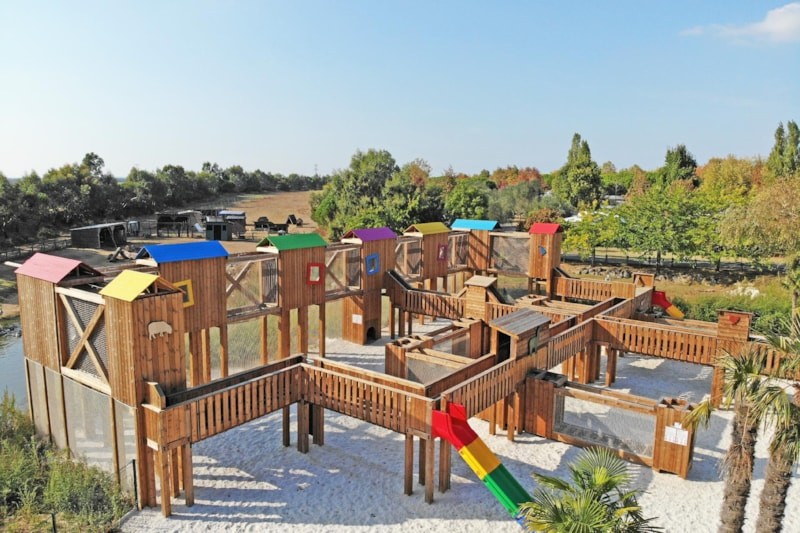 À quelques minutes de l’île d’Oléron, le camping 5 étoiles Séquoia Parc est un superbe écrin de verdure que l’ancien château de La Josephtrie garde précieusement. Sur place, un vaste parc aquatique avec piscines et toboggans à sensations fait le plaisir des enfants, tandis que les parents s’offrent un moment de détente au spa. Dans ce parc de 45 hectares, les locations de vacances s’adaptent à toutes les envies, depuis les cottages tout équipés aux lodges d’aventuriers. Les campeurs de plein air trouveront des emplacements arborés et délimités pour installer leur tente, caravane ou camping-car, avant de profiter des activités : centre équestre, mini ferme, tennis, aquagym, fitness… Par quoi allez-vous commencer ?